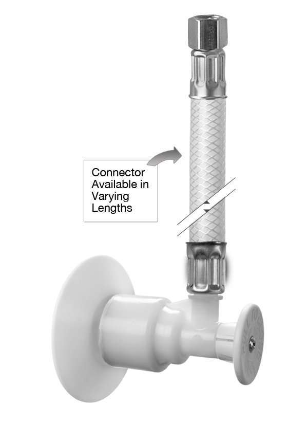 PUSHON® R-SERIES angle stop 1/2" nom. with attached PVC or Braided High Performance connector x 1/4" comp. nut with escutcheon.